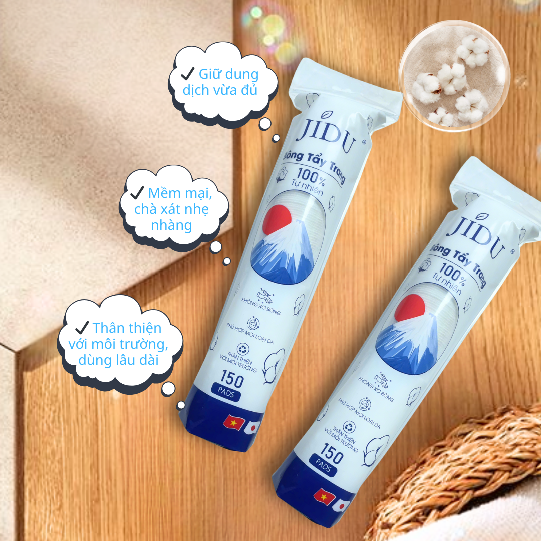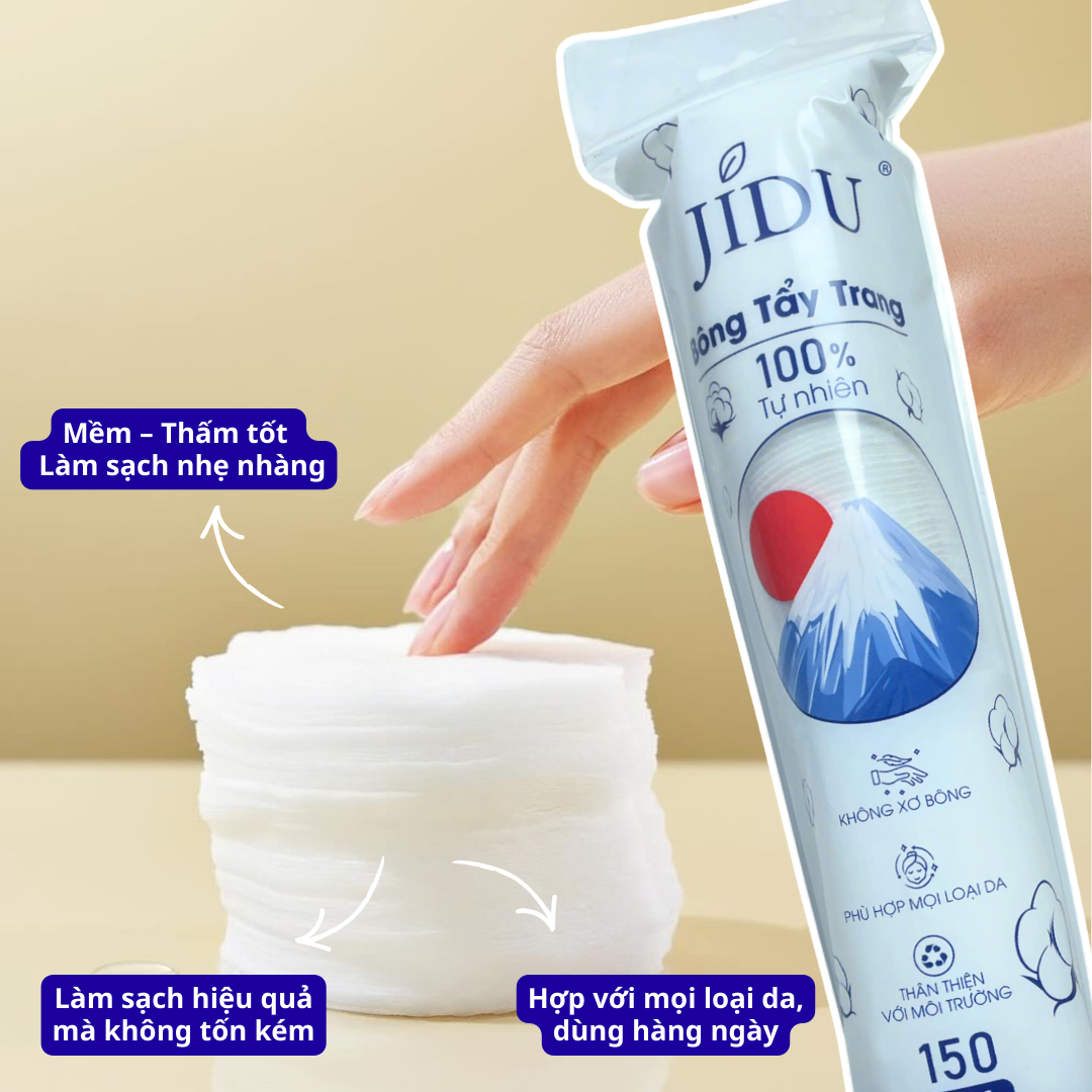 – Bông tẩy trang JIDU được làm từ cotton thiên nhiên, mềm mại và an toàn cho làn da, phù hợp sử dụng hằng ngày.