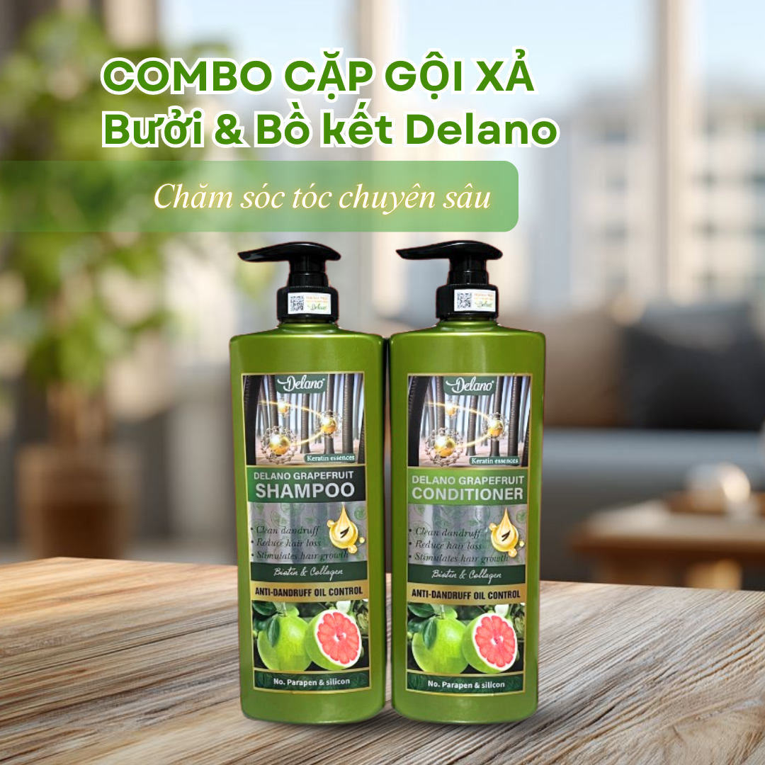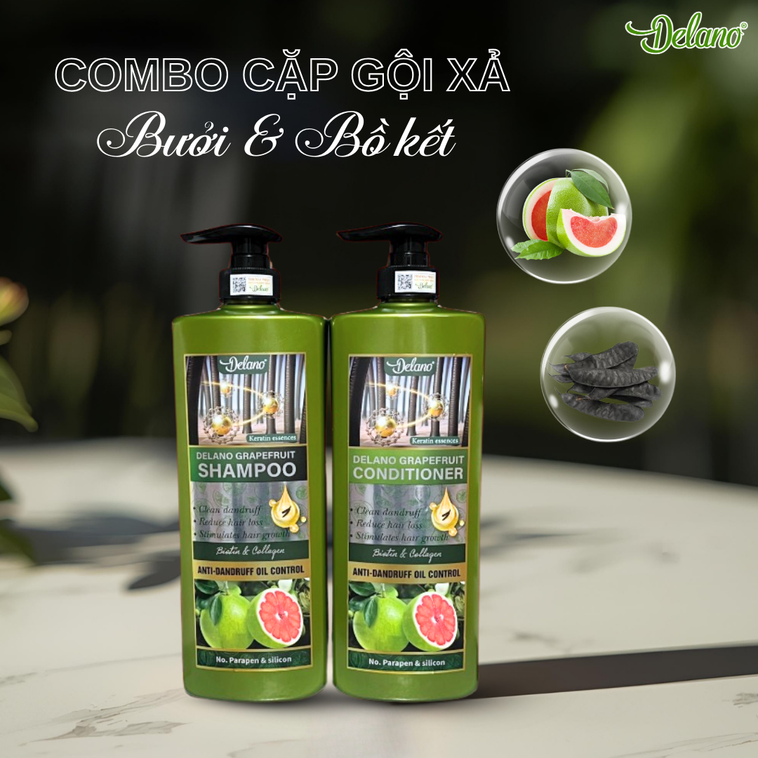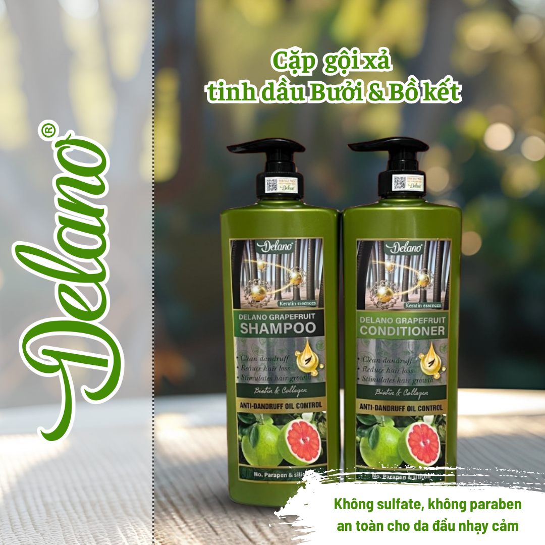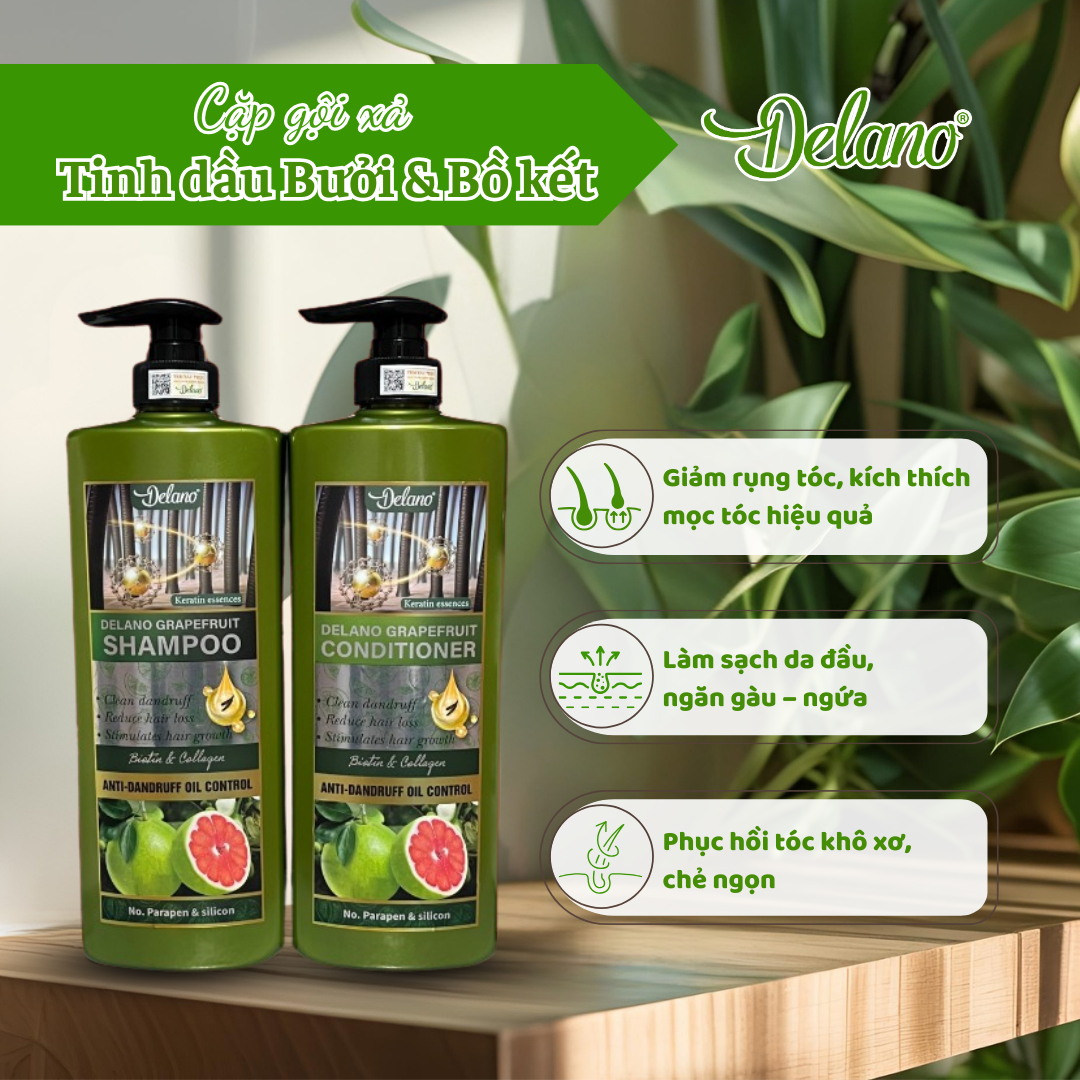 Đặt mua Cặp Gội Xả Bưởi và Tinh Chất Bồ Kết Delano 650ML Giảm Rụng, Phục Hồi Tóc Hư Tổn, Dưỡng Mềm Mượt